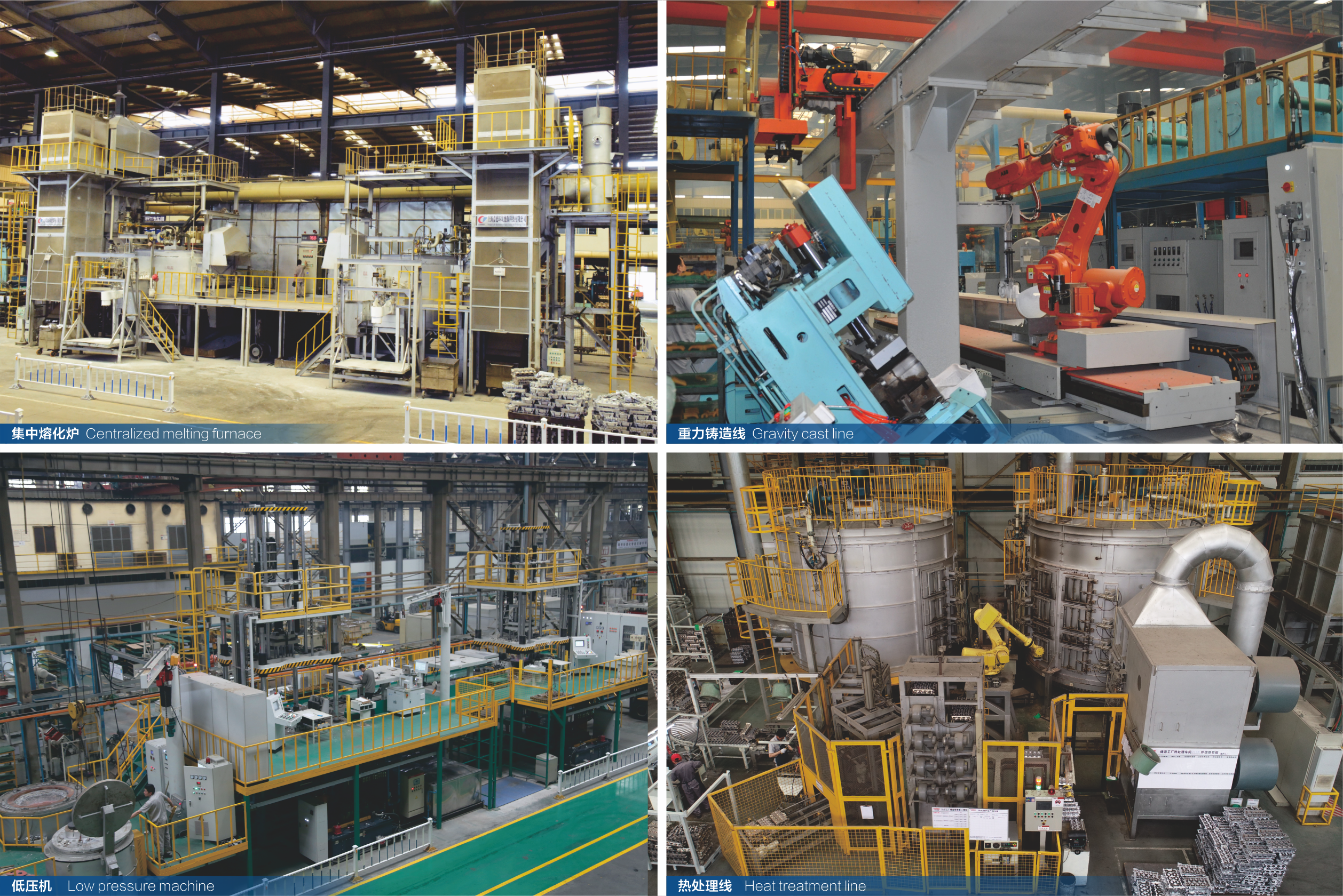 低壓、重力鑄造設(shè)備:低壓鑄造機群、機器人重力傾轉(zhuǎn)澆注機群、集中熔化爐、覆膜砂再生線、鋁屑再利用成套裝備、制芯機群、空/水淬火爐等熱處理設(shè)備、清理工序機群等設(shè)備。